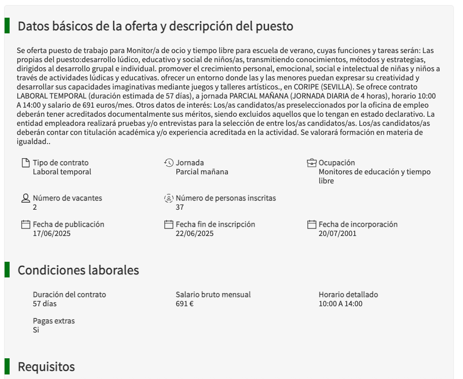 Oferta pública de empleo: Monitor/a de ocio y tiempo libre para escuela de verano