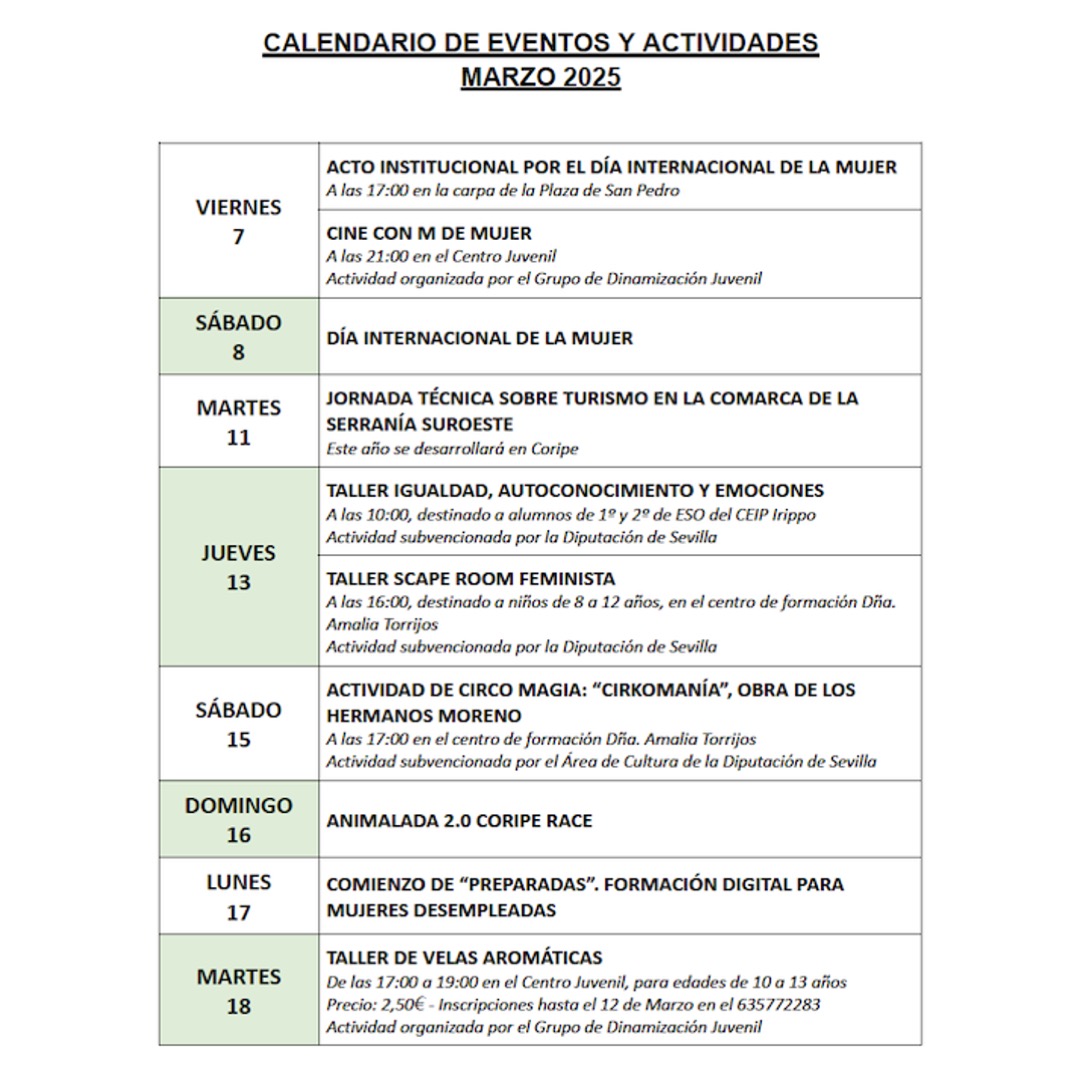 Publicado el calendario de actividades para este mes de Marzo de 2025
