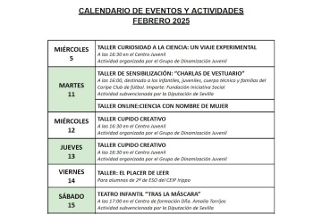 Calendario de actividades para Febrero