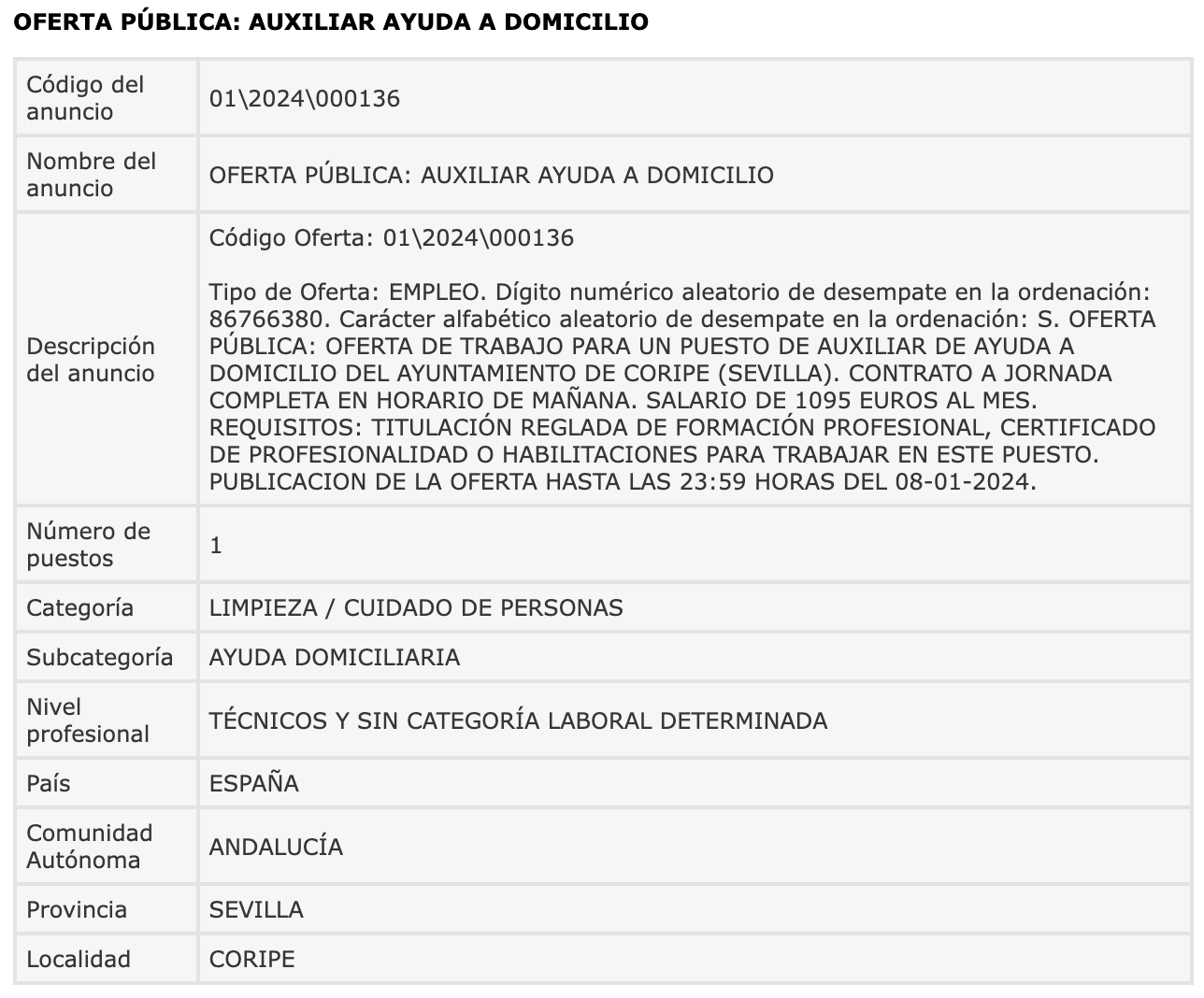 Oferta pública de empleo: Auxiliar ayuda a domicilio