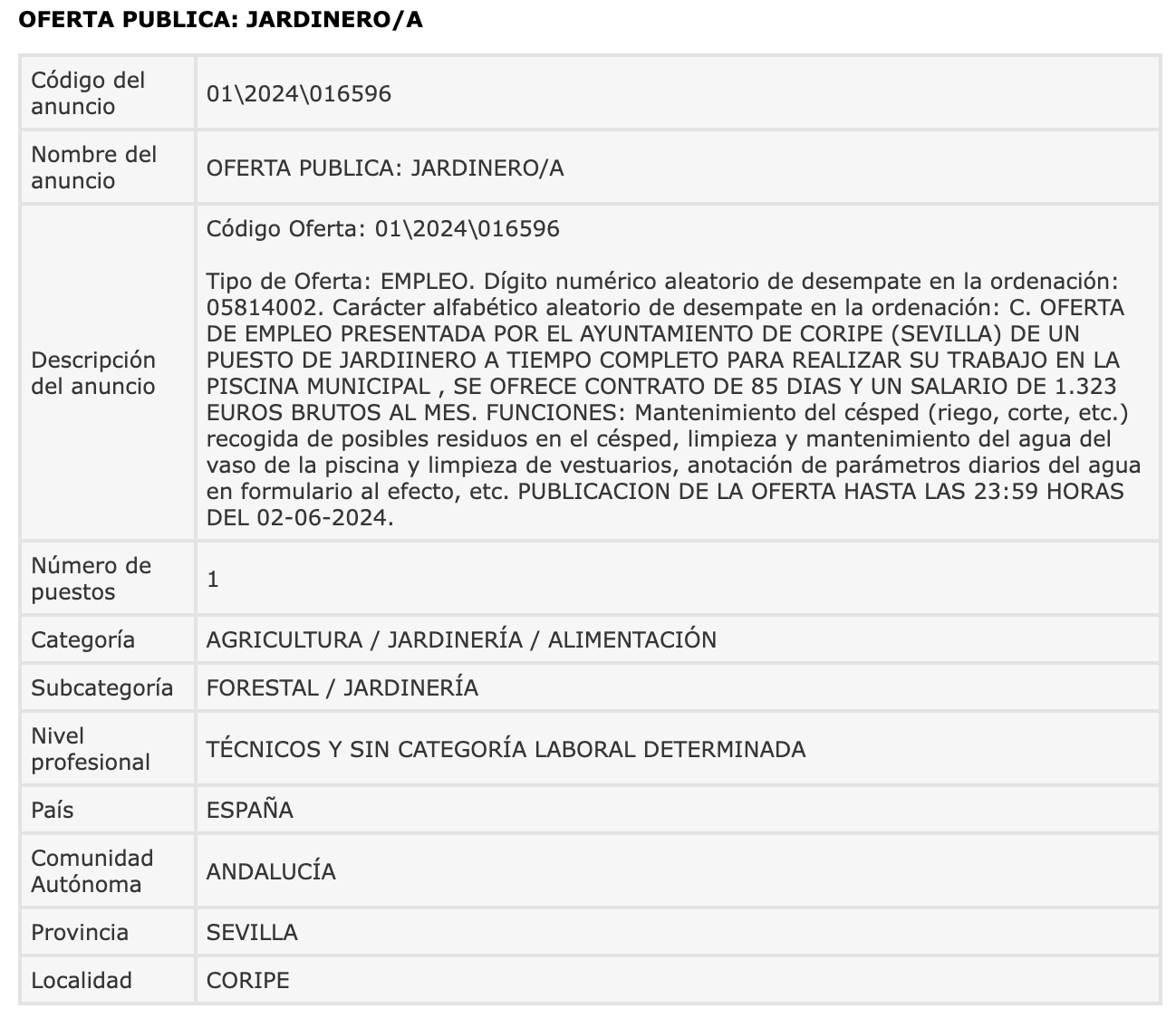 Hoy se ha publicado 1 nueva oferta de empleo de Jardinero/a para el Ayuntamiento. Se trata de un contrato de 85 días.